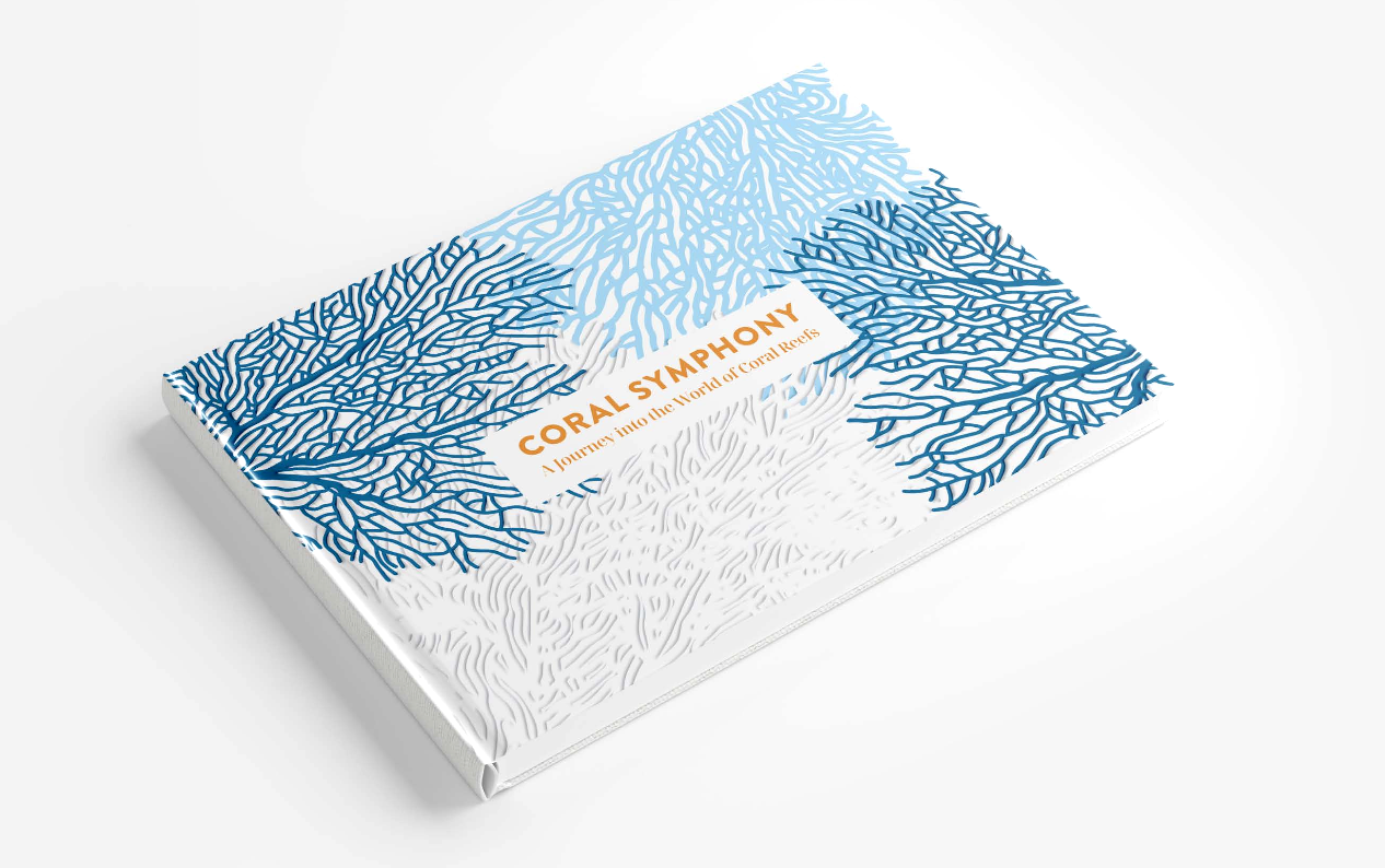 The design, print production and shipping of the book Coral Symphony, created in English language and with premium gold foiling and debossing effects.